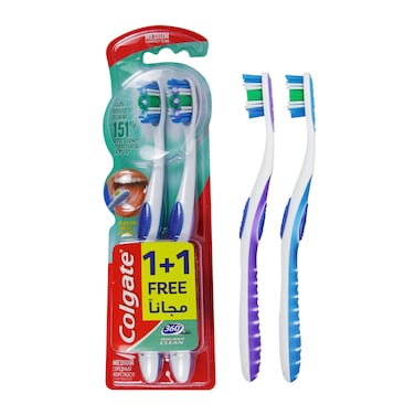كولجيت 360 فرشاة أسنان متوسطة الحجم × عبوة من قطعتين