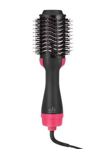 مجفف شعر متعدد الوظائف مزود بفرشاة هوائية دوارة لزيادة كثافة الشعر مناسب للاستخدام في الصالونات وردي/أسود 39 x 9 x 11سم