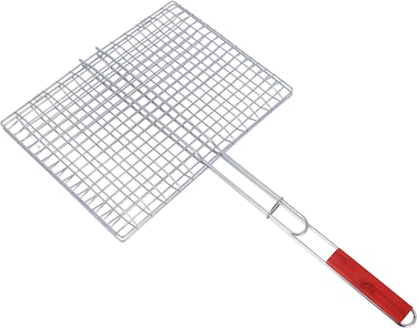 شواية حديد مطلية بالكروم - الشواية بتصميم شبكي قابل للطي والحمل مع يد خشبية تمنحك مساحة كبيرة لشواء الاسماك والخضروات والروبيان - RF10380