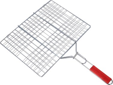 شواية حديد شبكية محمولة وقابلة للطي مطلية بالكروم مع مقبض قابل للازالة مناسبة لشواء الاسماك والخضروات والروبيان، مساحة شواء اكبر، موديل RF10372