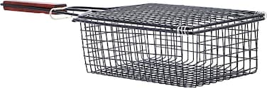 سلال رويال فورد القابلة للحمل لشوي الأسماك، للشواء والخضروات والنقانق واللحوم، من الستانلس سيتل 14 × 53 سم مع مقبض خشبي قابل للفصل