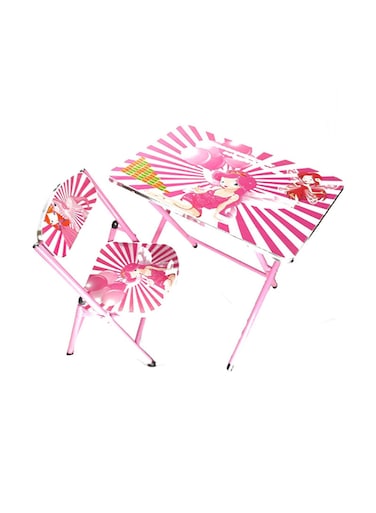 - Generic 2-Piece Foldable Wooden School Table And Chair Multicolour 50X60X50cm