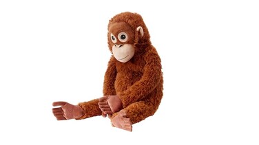 You can hang the orangutan on a shelf, around your waist or around a bag handle or strap by using the touch-and-close fastening on its hands and feet.