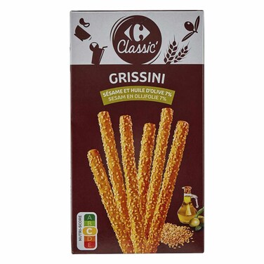 كارفور كلاسيك أصابع خبز جريسيني مصنوعة من زيت الزيتون والسمسم 125جرام