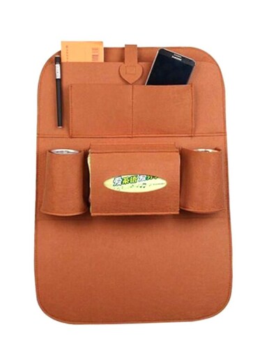حامل منظم لمقعد السيارة متعدد الجيوب باللون البني من الصوف قطعة واحدة
