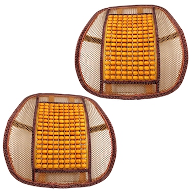 مسند ظهر خشبي لمقعد السيارة ، كراسي المكتب ، المنزل دعم الظهر القطني من الخيزران وسادة من الخيزران القطني مختلطة باللون البني - لون أصفر 2 قطعة