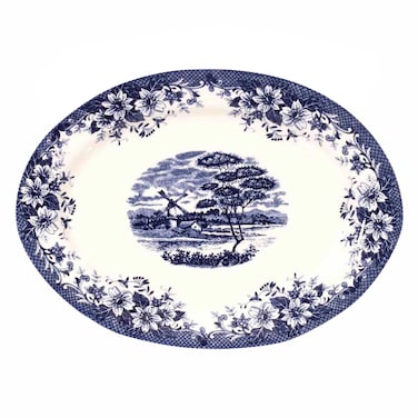 كلايتان طبق بيضاوي أزرق بتصميم طاحونة الهواء، 36 سنتيمتر