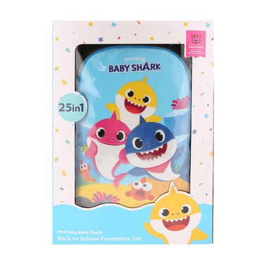Introducing our Baby Shark 25 In 1 Trolley Bag Set 18 Inch, a perfect blend of style and utility for your little ones. This delightful set features the ever popular Baby Shark theme that children adore. The set incorporates a versatile array of 12 different items, meticulously crafted for toddlers and young kids in mind. The bag is 18 inches in height, making it an ideal size for their little adventures.