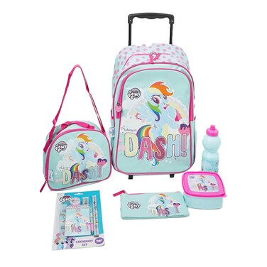 My Little Pony 12 in 1 Trolley Bag Set is luggage/ Rolling school backpack, It is made of an easy to clean and very durable material. This Trolley bag is large enough for school or weekend trip, even idea for long plane trip or international travel. The straps are padded and adjustable, which can ease the pressure on your shoulder. The school backpack cannot be removed separately from trolley.