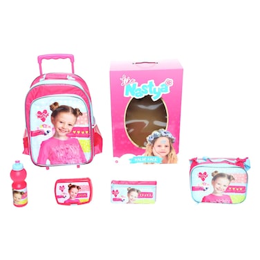 مجموعة حقيبة مدرسية بعجلات 5in1، مزينة برسومات ناستيا 18 بوصة