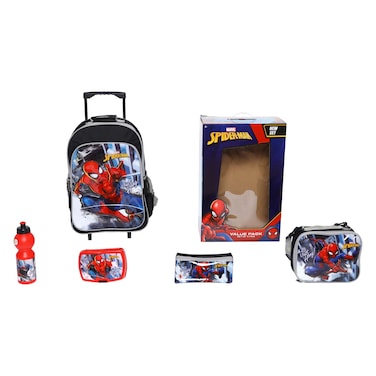 مجموعة حقيبة مدرسية بعجلات5in1، مزينة بشخصية سبايدرمان 18 بوصة