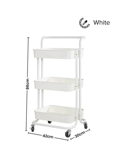 - Roman Gifts 3-Tier Utility Cart Rolling Storage Shelf With Handles 2 Lockable Wheels, White, 86X42X30cm