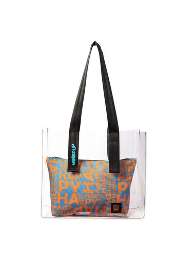 حقيبة بتصميم كلمات Moods Up وHappy للتسوق والشاطئ متعدد الألوان