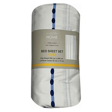 لا كوليكشن طقم ملاءة سرير قطني مطبوع منقط بكثافة 144 خيطًا لمكانين - رمادي