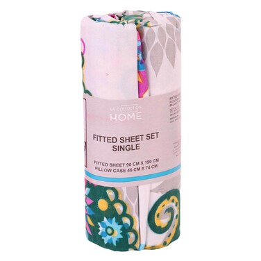 مجموعة لا هوم طقم شرشف مطاطي 2 قطعة، مفرد، متنوع