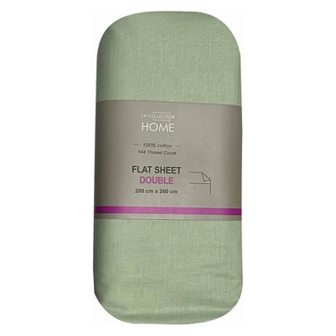 لا كوليكشن ملاءة مسطحة من القطن بعدد خيوط 144 مقاس 200 × 260 سم لمكانين - أخضر فاتح