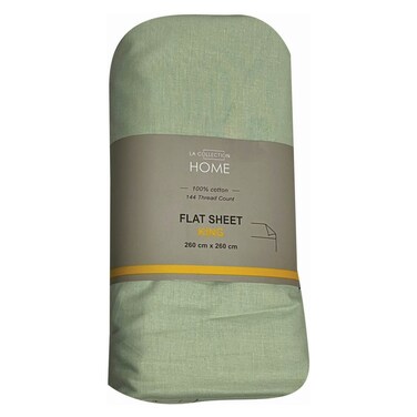 لا كوليكشن ملاءة مسطحة من القطن بكثافة 144 خيطًا حجم كينغ مقاس 260 × 260 سم - أخضر فاتح