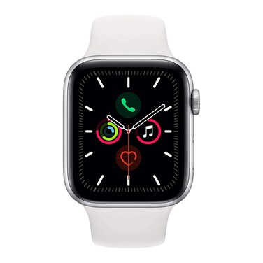 ابل ساعة ذكية، الجيل الخامس جي بي إس، 44 ملم، اطار فضي من الألمنيوم، حزام رياضي ابيض