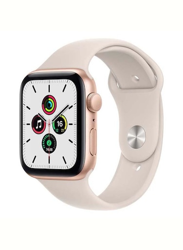ابل واتش إس إي ساعة ذكية مع خاصية تحديد المواقع جي بي اس، إطار مقاس 44 مم، هيكل من الألومنيوم لون ذهبي، سوار رياضي ستارلايت