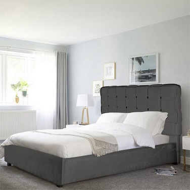 إن هاوس الشهباء هيكل سرير منجد بالمخمل - نفرين - 200×200 سم - رمادي غامق