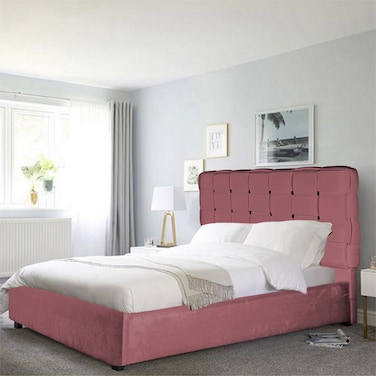 إن هاوس الشهباء هيكل سرير منجد بالمخمل - نفر ونص - 200×160 سم - زهري غامق