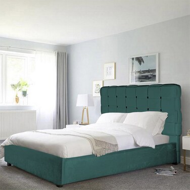 - إن هاوس الشهباء هيكل سرير منجد بالمخمل - نفر - 200×120 سم - تركواز