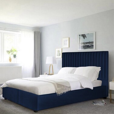 - إن هاوس ألكمار هيكل سرير منجد بالمخمل - نفر ونص - 200×140 سم - كحلي