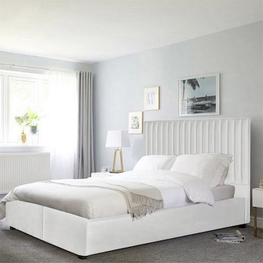 إن هاوس ألكمار هيكل سرير منجد بالمخمل - نفر - 200×120 سم - أبيض