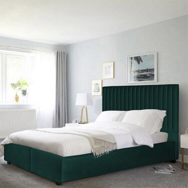 - إن هاوس ألكمار هيكل سرير منجد بالمخمل - نفر - 200×90 سم - أخضر غامق
