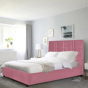 إن هاوس برلين هيكل سرير منجد بالمخمل - نفر ونص - 200×160 سم - زهري فاتح