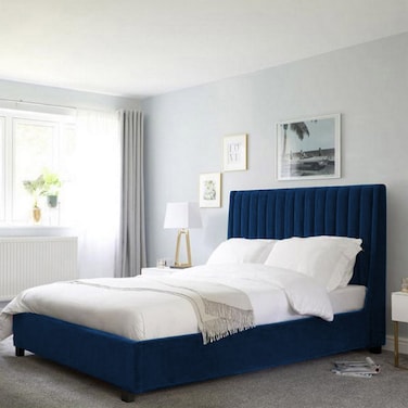 - إن هاوس لاس بالماس هيكل سرير منجد بالمخمل - نفرين - 200×200 سم - كحلي