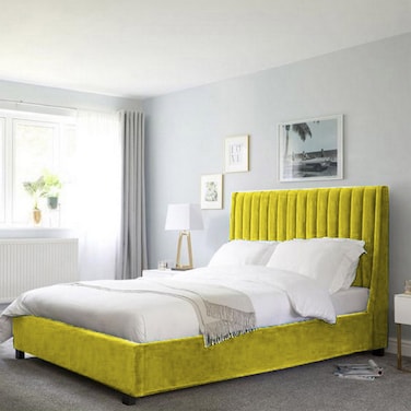 إن هاوس لاس بالماس هيكل سرير منجد بالمخمل - نفرين - 200×200 سم - ذهبي