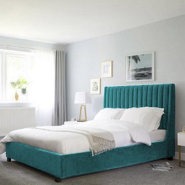 - إن هاوس لاس بالماس هيكل سرير منجد بالمخمل - نفرين - 200×200 سم - تركواز