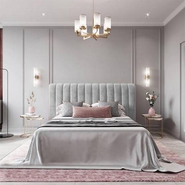 إن هاوس لاتيسو هيكل سرير منجد بالمخمل - نفرين - 200×200 سم - أبيض