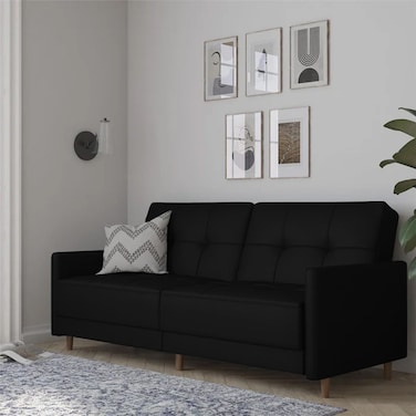 - إن هاوس لين أريكة سرير 2 في 1 منجدة بالمخمل - أسود