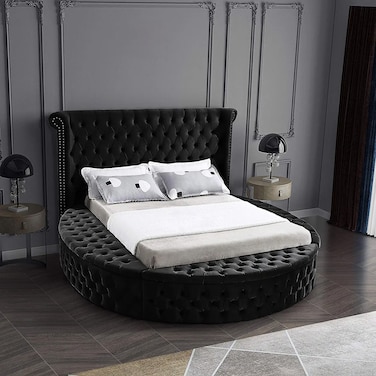 إن هاوس لوتس هيكل سرير منجد بالمخمل - نفرين - 200×200 سم - أسود