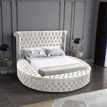 إن هاوس لوتس هيكل سرير منجد بالمخمل - نفرين - 200×200 سم - أبيض