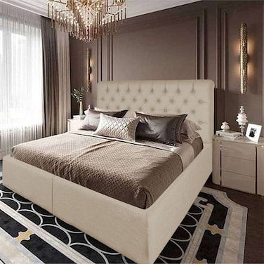 إن هاوس لجين هيكل سرير منجد بالكتان - نفر - 200×120 سم - بيج فاتح