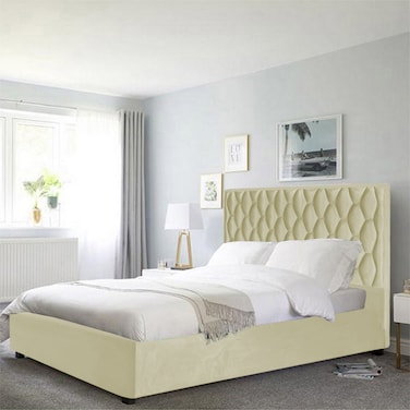 إن هاوس مدريد هيكل سرير منجد بالمخمل - نفرين - 200×200 سم - بيج