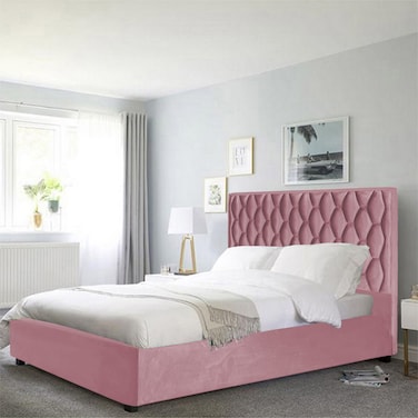 إن هاوس مدريد هيكل سرير منجد بالمخمل - نفر - 200×120 سم - زهري فاتح