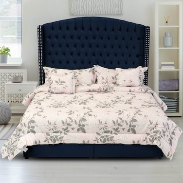 - إن هاوس مالديف هيكل سرير منجد بالمخمل - نفرين - 200×180 سم - كحلي