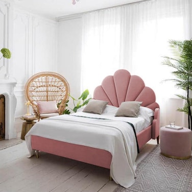 - إن هاوس نابولي هيكل سرير منجد بالمخمل - نفرين - 200×180 سم - زهري فاتح