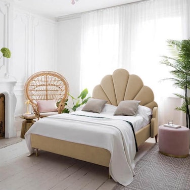 إن هاوس نابولي هيكل سرير منجد بالمخمل - نفرين - 200×200 سم - بيج