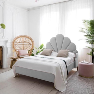 إن هاوس نابولي هيكل سرير منجد بالمخمل - نفرين - 200×200 سم - أبيض