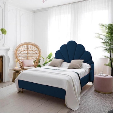 إن هاوس نابولي هيكل سرير منجد بالمخمل - نفر ونص - 200×160 سم - كحلي