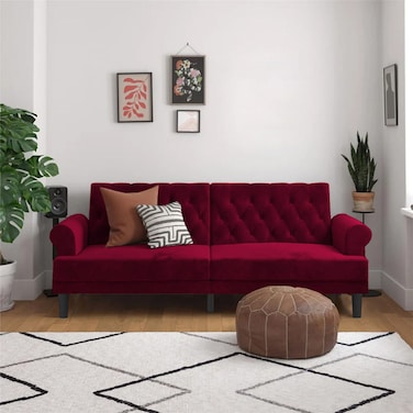 إن هاوس نوتيلا أريكة سرير 2 في 1 منجدة بالمخمل - برغندي