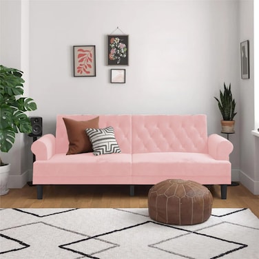 - إن هاوس نوتيلا أريكة سرير 2 في 1 منجدة بالمخمل - زهري فاتح