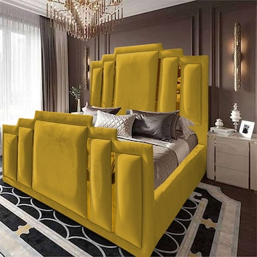 إن هاوس باريس هيكل سرير منجد بالمخمل - نفرين - 200×180 سم - ذهبي