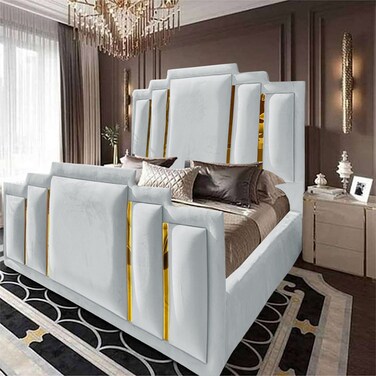 - إن هاوس باريس هيكل سرير منجد بالمخمل - نفر - 200×100 سم - أبيض
