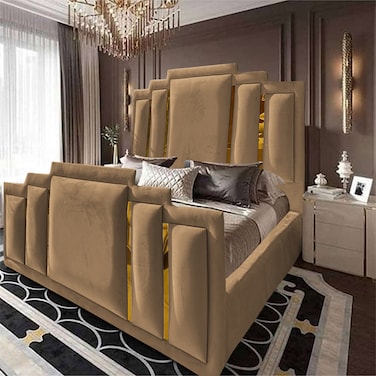 إن هاوس باريس هيكل سرير منجد بالمخمل - نفر - 200×120 سم - بيج